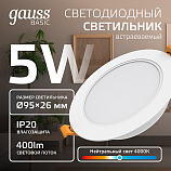 Светильник Gauss Basic Downlight круг 5W 400lm 4000K 170-260V IP20 95*26 монтаж белый LED 1/100